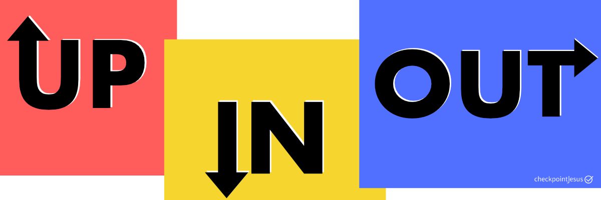 Weil #FirstThingsFirst, fangen wir das Jahr mit den Grundlagen des checkpointJesus an: der Vision, eine Gemeinde mit heiliger Strahlkraft zu sein! Oder wie Jesus es sagen würde, wie "eine Stadt auf dem Berg zu sein" (Matthäus 5,14). Wie geht dieses heilige Leuchten? Drei Dimensionen gehören dazu (du hast schon richtig geraten): UP, IN und OUT. In anderen Worten: Der Draht zu Gott, Die Gemeinschaft innerhalb der checkpointJesus Community und die Beziehungen, die diese Community mit Anderen lebt.